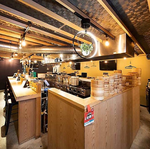 店内中央に設置された、オープンキッチンで作る蒸したてのお料理をご提供しております!キッチンを取り囲むカウンター席は、目でも耳でも楽しめる特等席!もちろんお料理も楽しんでいただけます!