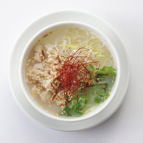 飲んだ後の〆は鶏そばで決まり!鶏の出汁が効いた、ほっと和める逸品◎その他にも、鶏そぼろ飯や、白がゆなど〆の逸品も各種ご用意★ちょっとお腹が空いたな…という時にもイノスケはお得に楽しめます♪
