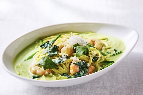 エビとほうれん草のバジルクリーム