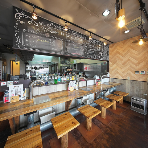 お一人様でも気軽にお立ち寄れるカウンター席をご用意!カウンター上の黒板にはおすすめメニューがずらり!