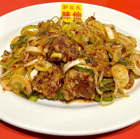 味仙名物の、コリコリコブクロの冷菜です。コリコリ食感とピリ辛なニンニクの聞効いたソースがお酒に合います!!