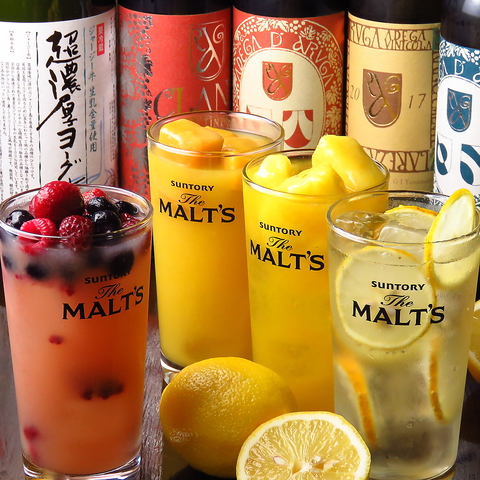 当店は女性にも人気のアルコールをご用意!ゴロゴロフルーツが入ったフルーツハイはマンゴー、グァバ、パッションフルーツの3種からお選びください♪色も見た目も綺麗でSNS映えも間違いなしのドリンクです。超濃厚ヨーグルト酒や黒酢サワーも女性にはぴったり◎ワインは国産のものをご提供。女性も喜ぶアルコール多数!
