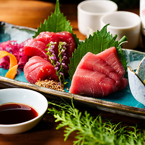 豊洲市場で仲卸し直送された鮮魚。一度も冷凍処理をしていない、新鮮な生本マグロでしか味わえない本来の旨味やトロける様な脂をご堪能いただけます。