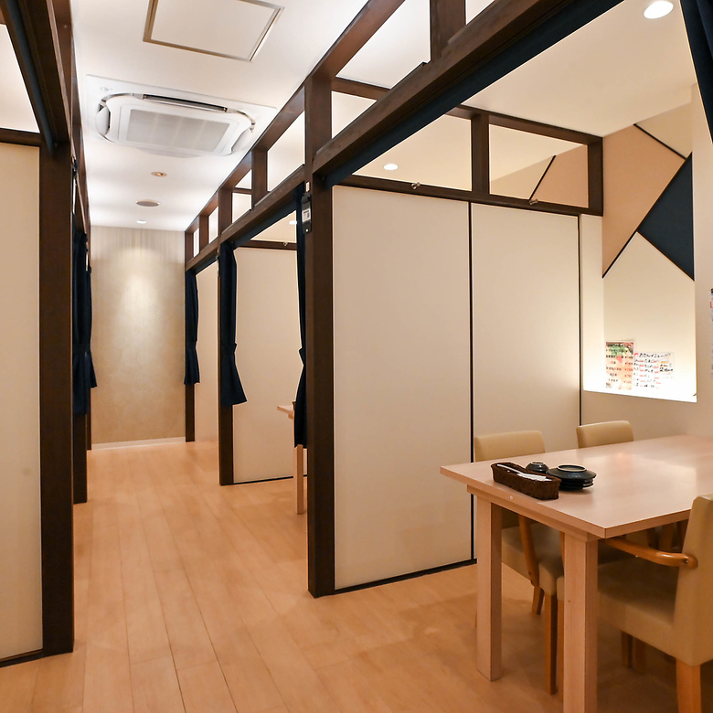 デートやご友人とのお気軽なお食事にも最適なテーブル席はカーテンを閉じれば個室気分でご利用いただけます♪