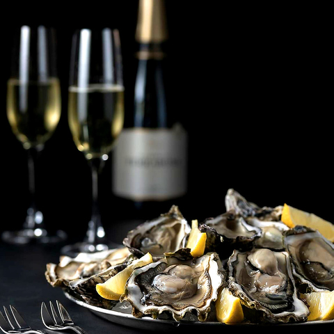 まずは生牡蠣本来の素材を味わい、イクラと中東スパイス「ハリッサ」で当店ならではのオリエンタルスタイルでお愉しみ下さい。
