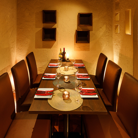 ちょっと大人な雰囲気が漂う店内には、少人数様から団体様まで幅広いシーンにご利用いただける個室席を多数ご用意しております。お仕事帰りの一杯はもちろん、お仕事先のご宴会や飲み会、女子会、パーティなども大歓迎◎お時間を忘れて、当店自慢の料理と厳選酒をご堪能ください
