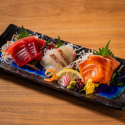 厳選した鮮魚3種類の刺身です。日本酒と和わせていかがでしょうか。