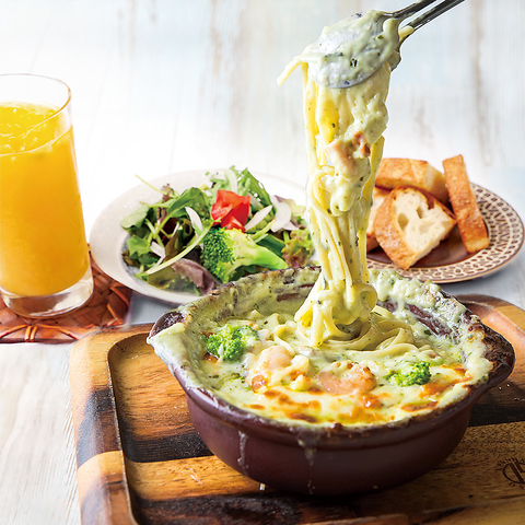 たっぷりお肉とデミグラスソースにたっぷりのチーズと共に焼き上げる濃厚ボロネーゼソースのボルケーノパスタ♪色鮮やかな野菜の味わいと共にご賞味ください♪サラダ、パン、ドリンク付き