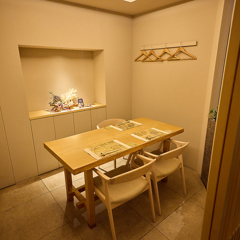 ≪上質なプライベート空間が自慢。≫自慢の個室空間は、接待や顔合わせにぴったりの空間で、心安らぐお食事をお楽しみいただけます。2種類の個室はつなげることで最大13名様までご利用可能。特別な時間を、静かな環境で過ごせるのは嬉しいポイント。プライベート感を大切にしたお席で、寛ぎのひとときをお楽しみください。