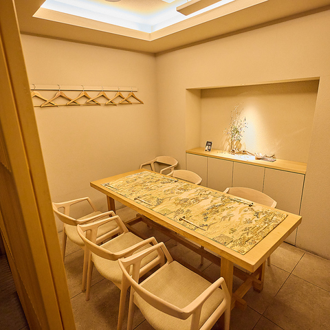 ≪上質なプライベート空間が自慢。≫自慢の個室空間は、接待や顔合わせにぴったりの空間で、心安らぐお食事をお楽しみいただけます。2種類の個室はつなげることで最大13名様までご利用可能。特別な時間を、静かな環境で過ごせるのは嬉しいポイント。プライベート感を大切にしたお席で、寛ぎのひとときをお楽しみください。