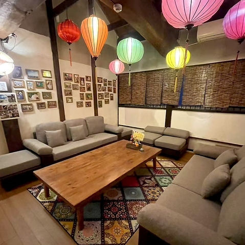 お一人様から大人数の団体様迄ご利用可能なお席を豊富にご用意♪ランチやお仕事終わりの普段使いはもちろん、各種ご宴会や女子会などにも◎大正時代の古民家をリノベーションし、200個近くのホイアンのランタンが灯る幻想的な店内◆店内に一歩足を踏み入れると世界遺産のホイアン町家にプチトリップした気分♪