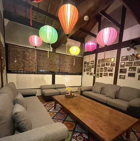 《おしゃれな店内♪》大正時代の古民家をリノベーション。200個近くのホイアンのランタンが灯る幻想的な店内◆店内に一歩足を踏み入れると世界遺産のホイアン町家にプチトリップした気分が楽しめます♪広々としたフロアは仕切りを使えば半個室空間としても利用OK♪お一人様から団体様まで様々なシーンでご利用ください◎