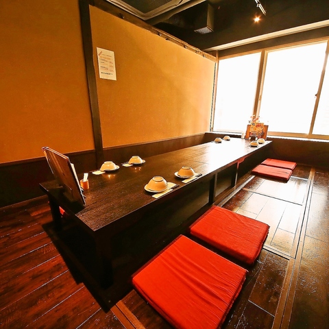 掘りごたつタイプのお席は足をおろしてゆったりおくつろぎ頂けます♪様々な個室をご用意しておりますので、人数に合わせたお席にご案内いたします!会社飲み会や2次会、お友達同士、ご家族でのご利用にもおすすめ◎古民家風の造りはまどろみの時間を演出。自慢の創作料理で最高の時間をお過ごしください♪