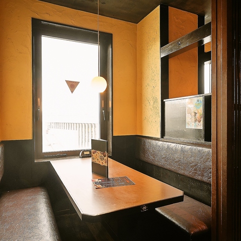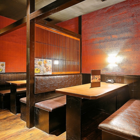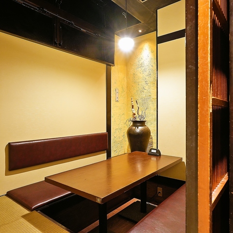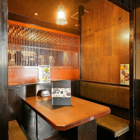【4名様~8名様向けのテーブル席】温かみのある照明で落ち着いた雰囲気を演出しております。周りが仕切られたBOXのお席なら、人目を気にすることなくお楽しみいただけます。