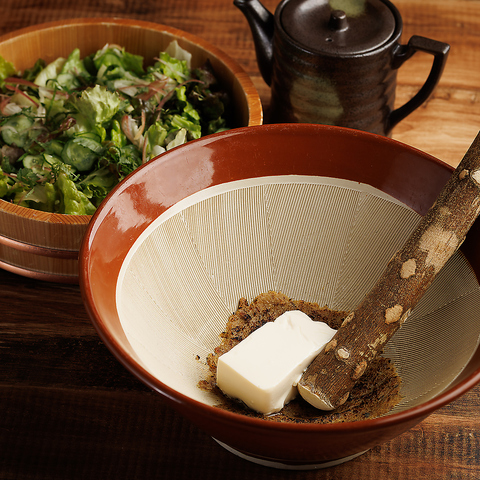 当店自慢の宮崎名物・冷や汁は絶品!魚の旨みと味噌、すりごまが溶け込んだ冷たいスープが、暑い季節はもちろん、季節問わず爽やかな味わいです。きゅうりや豆腐、大葉の薬味が食欲をそそります。さらに当店名物の冷や汁サラダは、さっぱりヘルシーで女性にも大好評。本場九州の郷土料理を、厳選芋焼酎とともにお楽しみください。