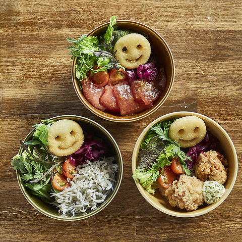 三崎港直送のまぐろを、お子さんでも食べやすい特製のはちみつ香味醤油で漬け込んだほんのり甘い漬け丼です。たっぷりの三浦野菜サラダと共に。
