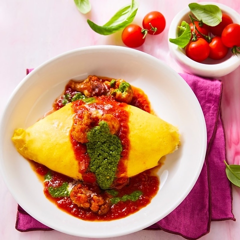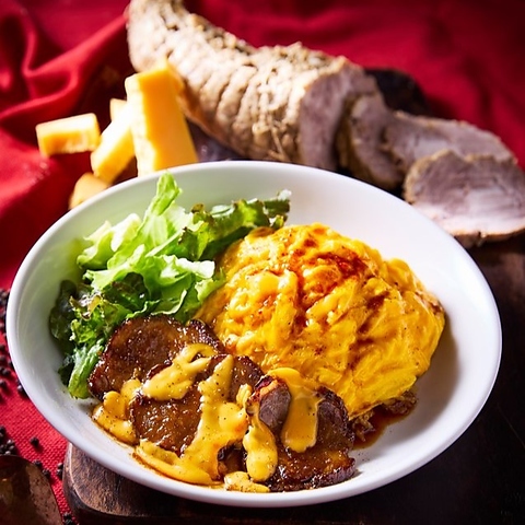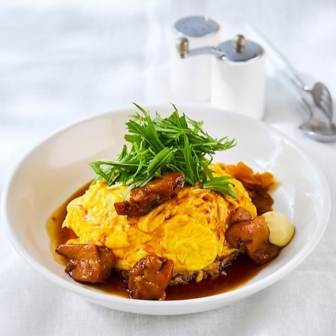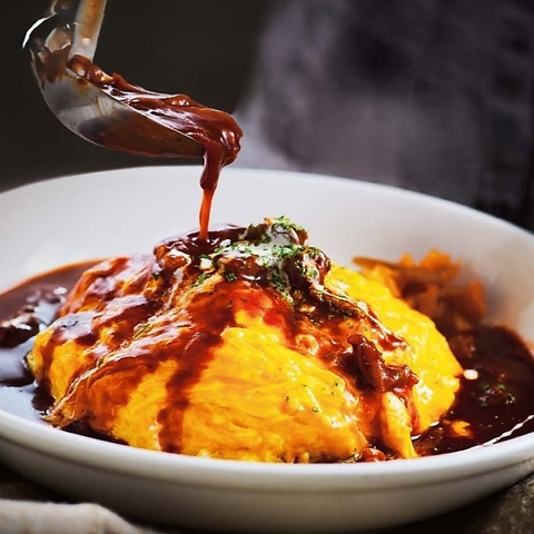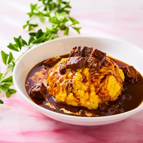 口に入れると、とろけるほど柔らかい牛肉の煮込みがたーっぷりかかったオムライス。トッピングのベビから165円(税込)やグラナパダーノチーズ165円(税込)をプラスしてオリジナルのオムライスにするのも◎