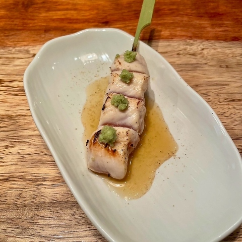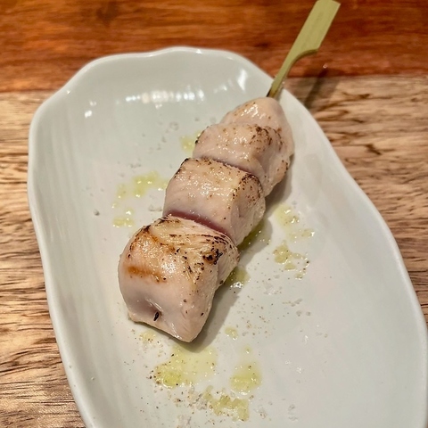 琥珀の月の系列、「TORI-BUDOU」3店舗でも大人気の串、当店でもお召し上がり頂けます。朝引きの新鮮なものにこだわった「ささみ炙り」などとワインのマリアージュをどうぞお楽しみくださいませ。