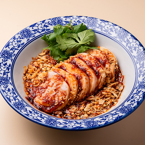 高橋シリーズ3店舗で人気のメニュー!【よだれ鶏】低温調理にた国産鶏むね肉に自家製のタレを絡めた絶品メニューです。