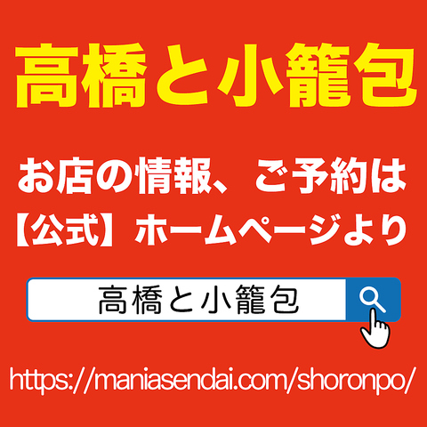 お店の情報、ご予約は高橋と小籠包【公式】ホームページをご確認ください。