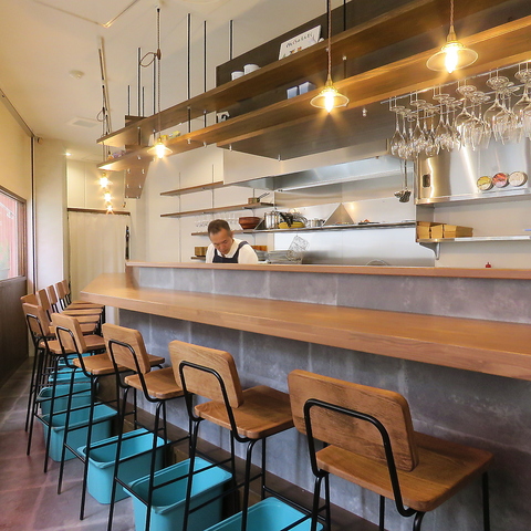 木目と白を基調とした店内は、落ち着いた雰囲気が魅力です。大きめの椅子を備えたカウンター席では、ゆったりとくつろぎながらお食事をお楽しみいただけます♪大人のデートや記念日など、大切な方との特別な時間をお過ごしください。