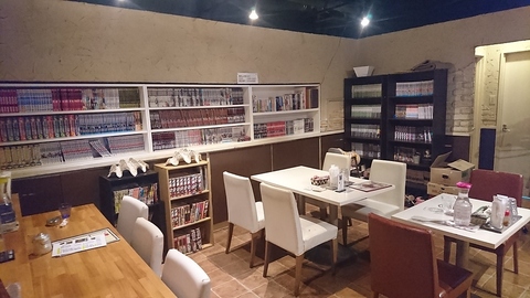 漫画を約1000冊ご用意していますので、漫画を読みながらゆったりとおくつろぎいただけます。カウンター席もございますので、お一人様でのランチにもぴったり。お仕事帰りの1杯や、2軒目のご利用にも◎