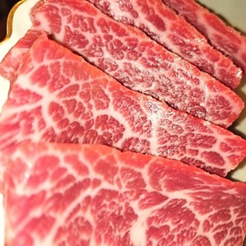 店主イチオシの特撰ミスジです。味の濃いウデ肉の一部で、肉質は柔らかく、豊かな旨味が口の中でとろけます。適度なサシが入ったその風味は、炭火で焼くことで一層引き立ち、香ばしさと甘みが口いっぱいに広がります。肉本来の旨味を存分に感じられる自信の一品です。是非ご賞味ください!