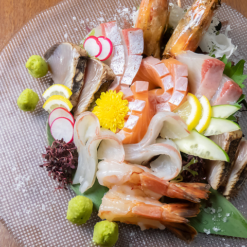 彩り豊かに盛り付けた新鮮な旬のお刺身はとても芸術的で記念日やデートシーンにも演出してくれる一皿です。