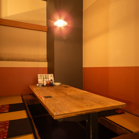 2名様~7,8名様、大小の半個室。ゆったり過ごせる和風の掘りごたつ座敷をご用意。周りを気にしにくいのでプライベートな空間でお楽しみ頂けます。足も延ばして座れるので女性やご年配の方にも嬉しい掘りごたつの座敷になっております。