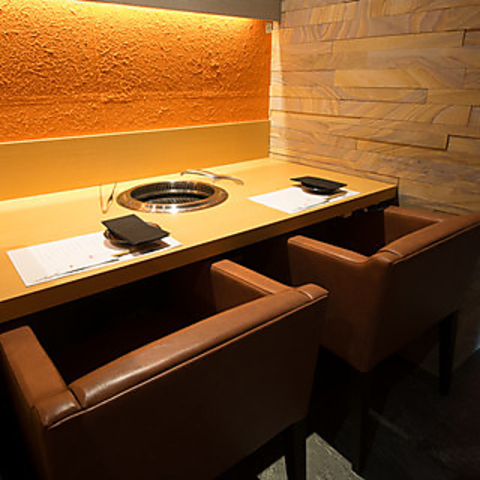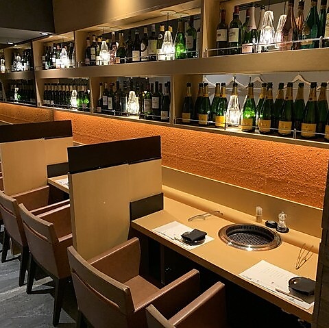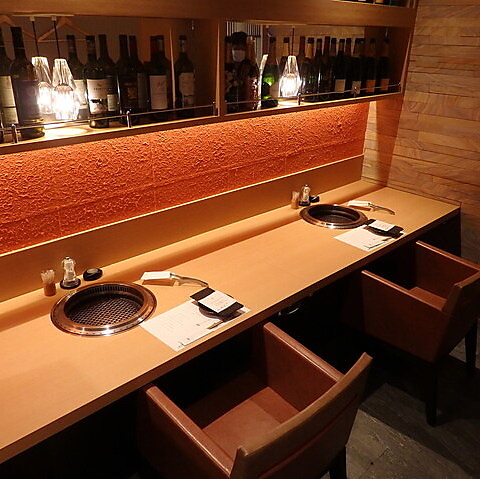 温かな明かりが灯る店内には、少人数様からお気軽にご利用いただけるカウンター席を完備しております。席毎に仕切りを用意しておりますので、隣を気にせずごゆっくりとお食事をお楽しみください。