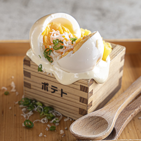焼き印が入った升にあふれんばかりのポテトサラダ!この他にも当店のお料理はかわいい升でご提供しているものが多数♪普段とは違う雰囲気でお食事が楽しめます!