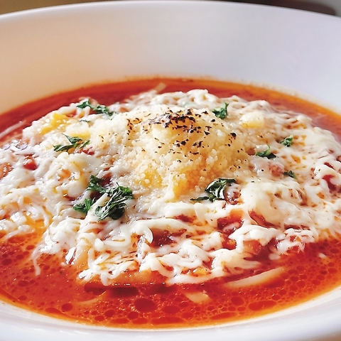 もちもちの自家製生パスタに、濃厚なチーズクリームソースがとろりと絡む「表町カルボナーラ」。ブラックペッパーがピリッと効いて、まろやかさの中に奥深さを感じさせます。生クリームとチーズのコク、そしてとろーり温玉が織りなすハーモニーは、まさに至福の味わい。ぜひ一度ご賞味ください。