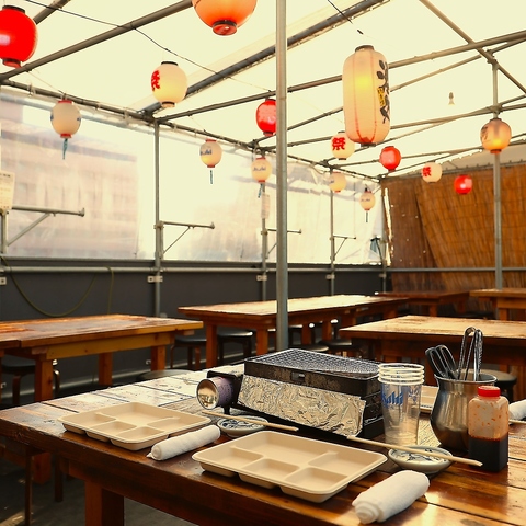 屋根付きの屋上は雨天でもバッチリ◎2名様~ご案内可能です。(曜日によって受付人数異なります。)エアコン完備!!