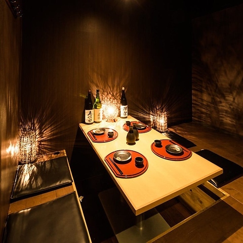 お客様だけの完全プライベート空間で周りを気にせずお楽しみいただけます!和の装飾の数々と間接照明がお客様の宴に華を添えます♪心地良い空間と雰囲気に包まれて,各種お酒をお楽しみ下さい♪飲み放題付コース多数ご用意しております。ご宴会や飲み会,接待,合コン,女子会,貸切などの宴会に最適◎