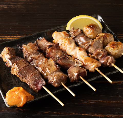 当店のやきとんは取手バナナポークを使ったやきとん!かしら、レバー、たん、3種類。盛り合わせもございます。1本単位で頼めますのでお気軽に注文してください
