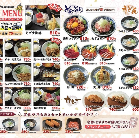 かけうどん308円(込)やポークカツカレー748円(込)などリーズナブルな価格のランチメニューは20種類以上!