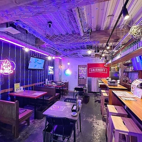 カウンター席の周りにはグラスや豊富なアルコールがおしゃれに並んでいるので、2人のデートにもオススメです♪ポップな雰囲気なのでリラックスしてお過ごしいただけます。
