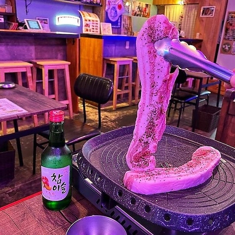 肉汁あふれるサムギョプサルをご用意しました♪豚肉の香ばしく甘みたっぷりな脂が野菜と絡み食欲を促進させます。店内でお酒と一緒にご堪能ください。ご注文は2人前より承っていますので女子会やご友人同士のお食事でどうぞ♪