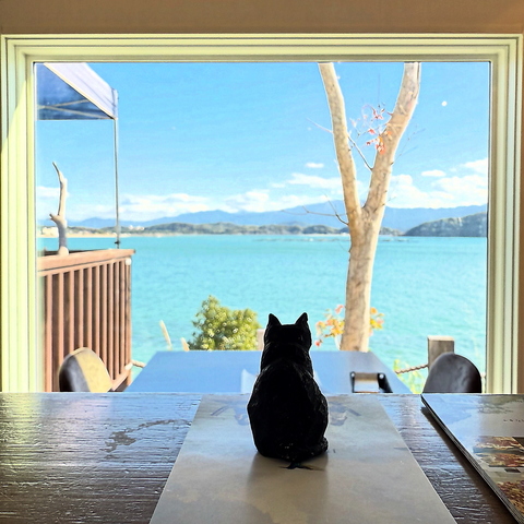【一度店内に足を踏み入れると船の中にいるような感覚に】大きい窓が並んだカウンター席は糸島の海をご覧頂きながらお食事をお楽しみ頂けます。大きい窓から見た景色は一つの絵画を見ているような絶景が広がります。お食事とご一緒に景色も一つのスパイスとしてお楽しみ下さい。