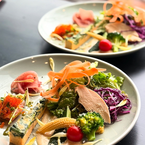 糸島産の野菜や果物、旬の食材を最大限に使用し、お客様には五感でお食事をお楽しみ頂けるよう彩り、触感、味細部に至るまでこだわりをもってお作りしております。今お届けできる最大限のサービスで皆様をおもてなし致します。(内容は仕入れにより異なる場合がございます。)