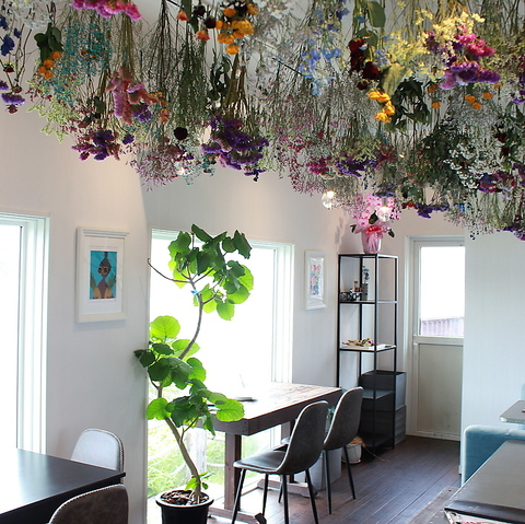 ドライフラワーに囲まれた空間でのお食事をお楽しみください。