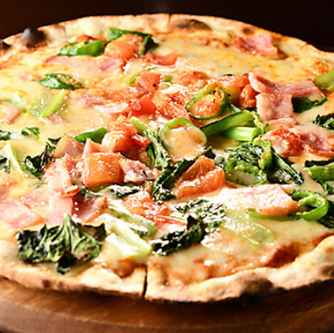 人気メニューのピザは、生地を1から店内で手作りしているこだわりの逸品♪バジルの風味とモッツァレラチーズが相性抜群な定番マルゲリータや、シーフードたっぷりの魚介のピッツァ、その時期によって使用する野菜が異なるトマトベースの厳選野菜のピッツァなど、どれもビールには最高な相棒をご用意しております!