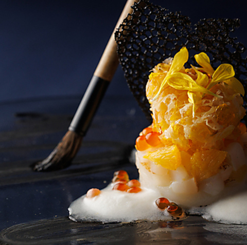 季節の食材を使った自然をテーマにしたフルコースをお楽しみ頂けます。薪火や液体窒素で工夫を凝らした斬新な調理法で、おいしさを最大限に引き出しております。