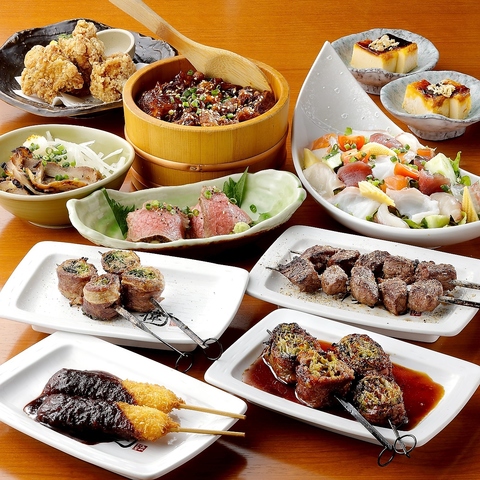 名物の牛巻き串や串焼き、もつ鍋などをお楽しみいただける飲み放題付きのコースをお得にご用意しております♪各種ご宴会にもオススメです!
