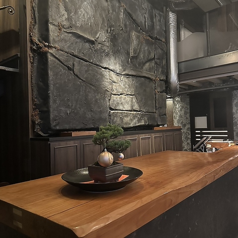 大人な空間が広がり、趣のある落ち着いたカウンター席は【全6席】壁一面の彫刻や盆栽など目でも愉しめるインテリアに囲まれながらお食事をごゆっくりいただけるので常連さんにも人気のお席です!仕事帰りにサク飲みからお一人様のご利用も大歓迎です♪