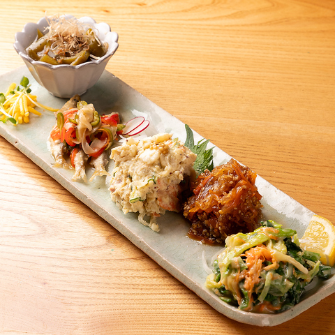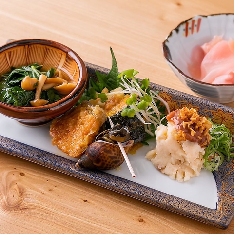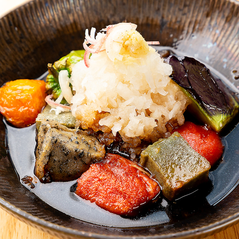 その時期の野菜などを出汁などで味付けしております。全て手作りで当店ナンバーワンの人気メニューです!ぜひ、お酒のツマミにお召し上がりください!※時期によって内容は変わります。