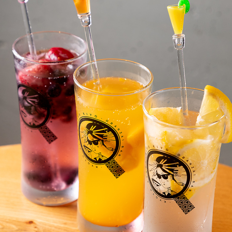 凍らせた生フルーツがひんやり。果実を潰し、果汁たっぷりの美味しさがたまりません。追いチューハイをオーダーされるお客様も続出中!