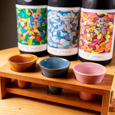 地酒飲み比べ三種!京都の地酒を飲み比べでもお楽しみいただけます。すっきり飲みやすいものから、日本酒らしいパンチのあるお酒まで、種類の異なる3種をお楽しみいただけます。内容は季節によって異なります。