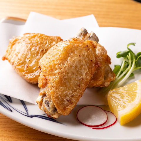 当店名物の唐揚げは骨付きで食べ応え抜群!!!外はカリカリ、中はジューシーに仕上げております。お酒のアテにはもちろん、お食事の〆にもぴったりです。一度食べたらやみつきになること間違いなし!ぜひ一度ご賞味ください♪