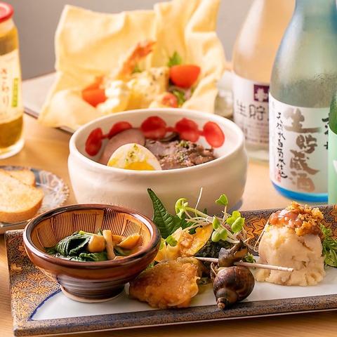 当日オーダーでもOKな「きよきよ厳選気まぐれコース」もございます。旬の肴とおばんざいとお酒をご用意。